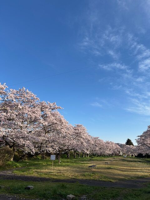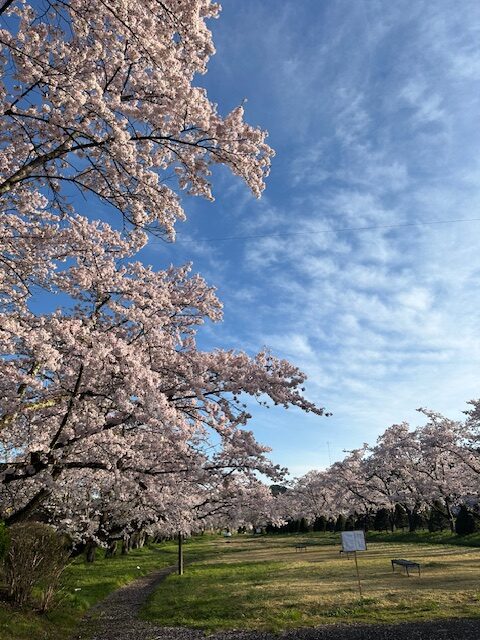 これはアルピナから車で6分くらいの緑地公園の桜です。