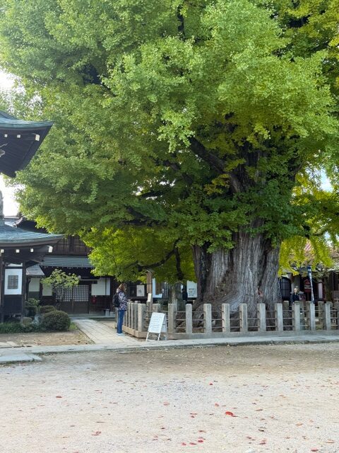 アルピナから徒歩6分ほどの樹齢1300年もの大きな巨木 大銀杏も少しづつ黄色く黄葉しはじめました